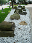 再往裏面走沒多久,地質系門口有個岩石公園。